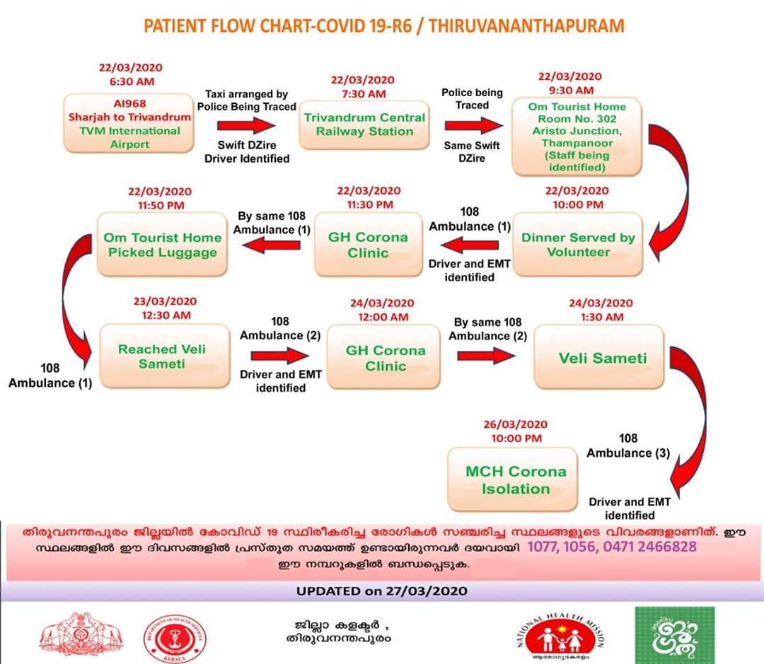 തിരുവനന്തപുരം ജില്ലയിൽ കോവിഡ് 19 സ്ഥിരീകരിച്ച വ്യക്തി സഞ്ചരിച്ച സ്ഥലവും സമയവും അടങ്ങിയ റൂട്ട് മാപ്