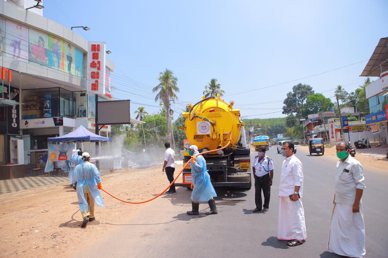 കൊറോണ മരണം. പോത്തൻകോട് വാവറ അമ്പലം പ്രദേശങ്ങൾ അണു വിമുക്തമാക്കി