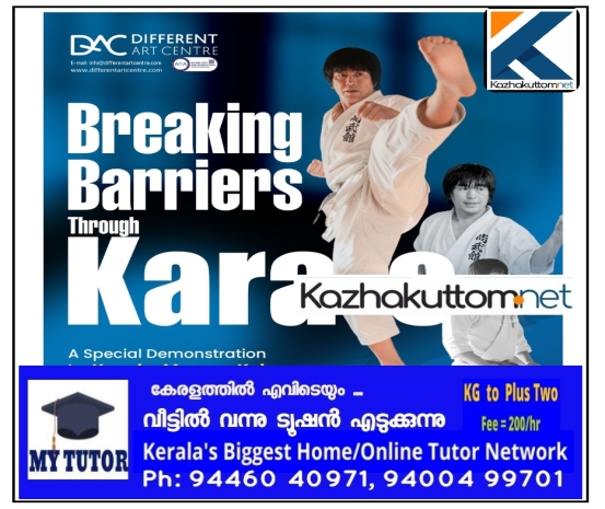 നാളെ (ചൊവ്വ) രാവിലെ 11:00 മണിക്ക് ജപ്പാനിലെ ഇന്റര്നാഷണല് ഷോട്ടോക്കാന് ഷോബുകാന് കരാട്ടെ സംഘടനയുടെ സ്ഥാപകന് ഗ്രാന്ഡ് മാസ്റ്റര് കാന്ചോ മസായാ കൊഹാമ പരിശീലന പദ്ധതിക്ക് തുടക്കം കുറിക്കും
