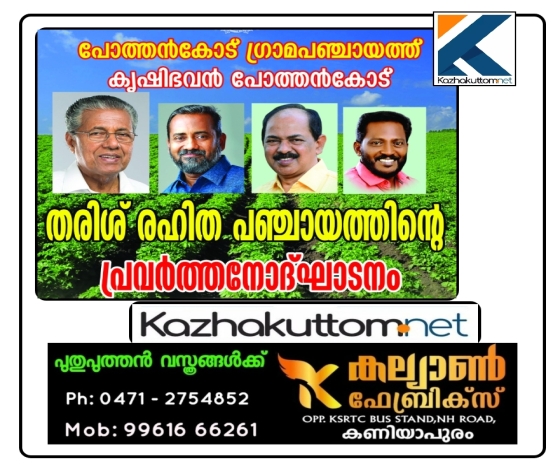 പോത്തൻകോട് കൃഷിഭവനിൽ തരിശ് രഹിത പഞ്ചായത്തിന്റെ പ്രവർത്തനോൽഘാടനം 2024 ഒക്ടോബർ 18 വൈകുന്നേരം 3.30 ന് നടക്കും