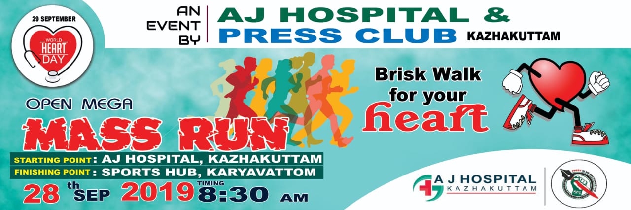 ബ്രിസ്ക്ക് വോക്ക് ഫോർ യുവർ ഹാർട്ട് എന്ന സന്ദേശവുമായി ഹൃദയ ദിനത്തിൽ കഴക്കൂട്ടത്ത് ആയിരങ്ങൾ അണി നിരന്ന കൂട്ടയോട്ടം