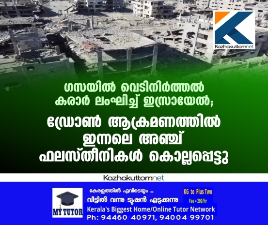 ഇസ്രായേല് ഡ്രോണ് ആക്രമണത്തില് അഞ്ച് ഫലസ്തീനികള് കൊല്ലപ്പെട്ടതായാണ് റിപോര്ട്ട് ചെയ്തു.