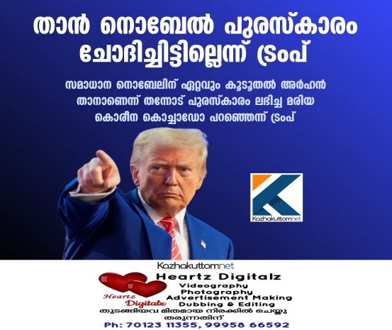 സമാധാന നൊബേലിന് ഏറ്റവും കൂടൂതല് അര്ഹന് താനാണെന്ന് തന്നോട് പുരസ്കാരം ലഭിച്ച മരിയ കൊരീന കൊച്ചാഡോ പറഞ്ഞെന്ന് അമേരിക്കന് പ്രസിഡന്റ് ഡോണള്ഡ് ട്രംപ്.