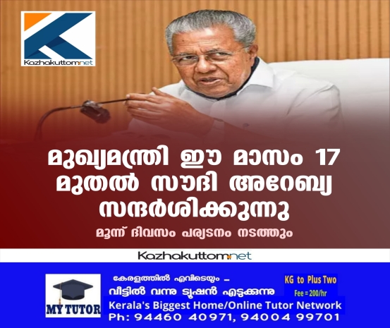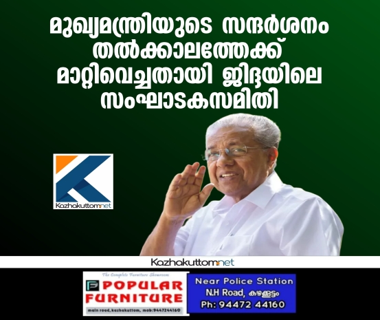 മുഖ്യമന്ത്രി പിണറായി വിജയന്റെ ഗൾഫ് രാജ്യങ്ങളിലേക്കുള്ള സന്ദർശനാർത്ഥം സൗദി അറേബ്യയിലെ ജിദ്ദയിൽ നടത്താനിരുന്ന പരിപാടികൾ താല്കാലത്തേക്ക് മാറ്റിവെച്ചതായി സംഘാടക സമിതി അറിയിച്ചു.