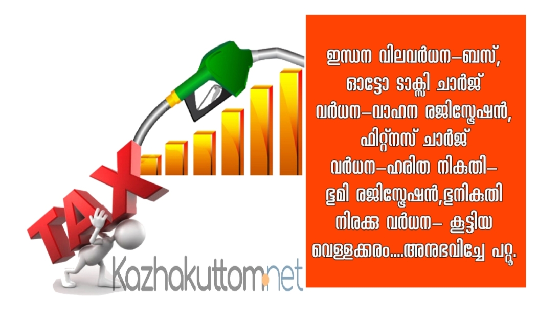 ഇന്ധന വിലവർധന-ബസ്, ഓട്ടോ ടാക്സി ചാർജ് വർധന-വാഹന രജിസ്ട്രേഷൻ, ഫിറ്റ്നസ് ചാർജ് വർധന-ഹരിത നികുതി- ഭൂമി രജിസ്ട്രേഷൻ,ഭൂനികുതി നിരക്കു വർധന- കൂട്ടിയ വെള്ളക്കരം....അനുഭവിച്ചേ പറ്റൂ.