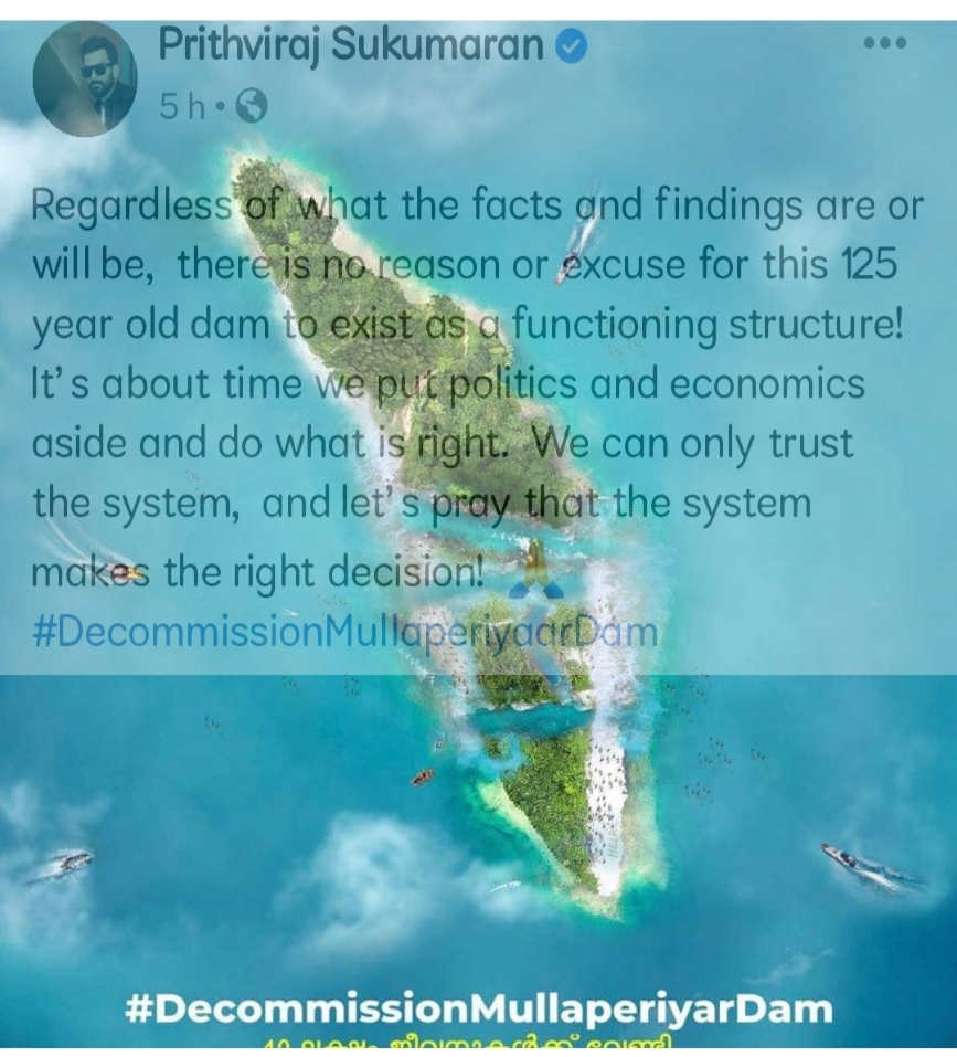 മുല്ലപ്പെരിയാര് ഡാം പൊളിച്ചുകളയണമെന്നാവശ്യപ്പെട്ട് പൃഥ്വിരാജ്.