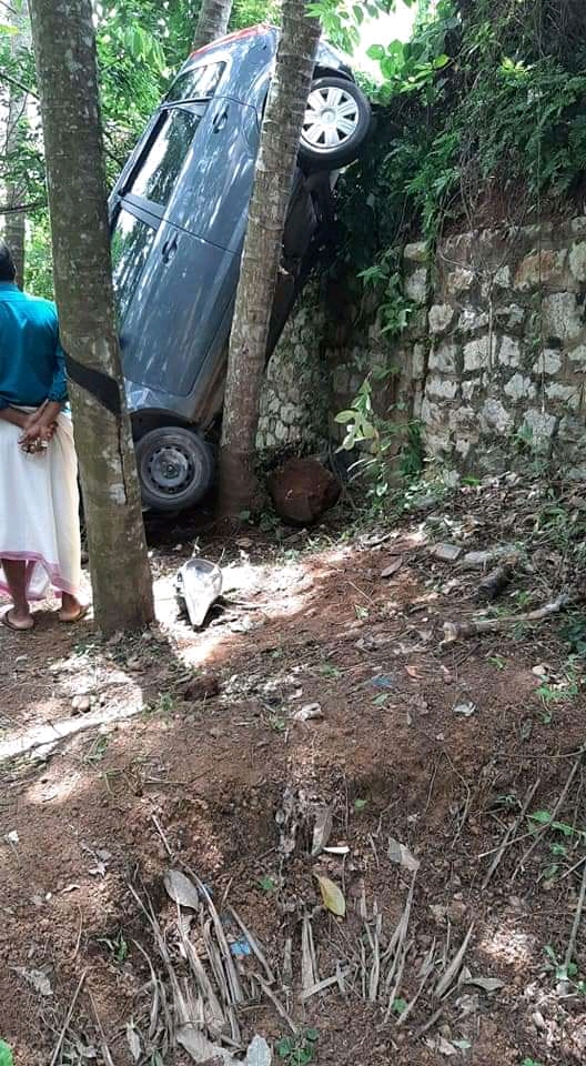 പോത്തൻകോട് മഞ്ഞമല വേങ്ങോട് റോഡിൽ കണ്ടു കുഴി പാലത്തിനു സമീപം നിയന്ത്രണം വിട്ട കാർ കുഴിയിലേക്ക് മറിഞ്ഞു
