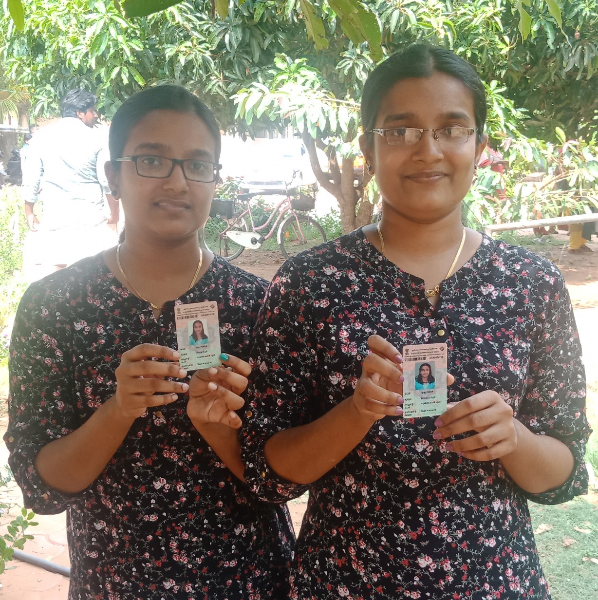 കന്നി വോട്ടിനെത്തിയ കൗതുകമായി ഇരട്ടകളായ കൃഷ്ണയും കൃപയും