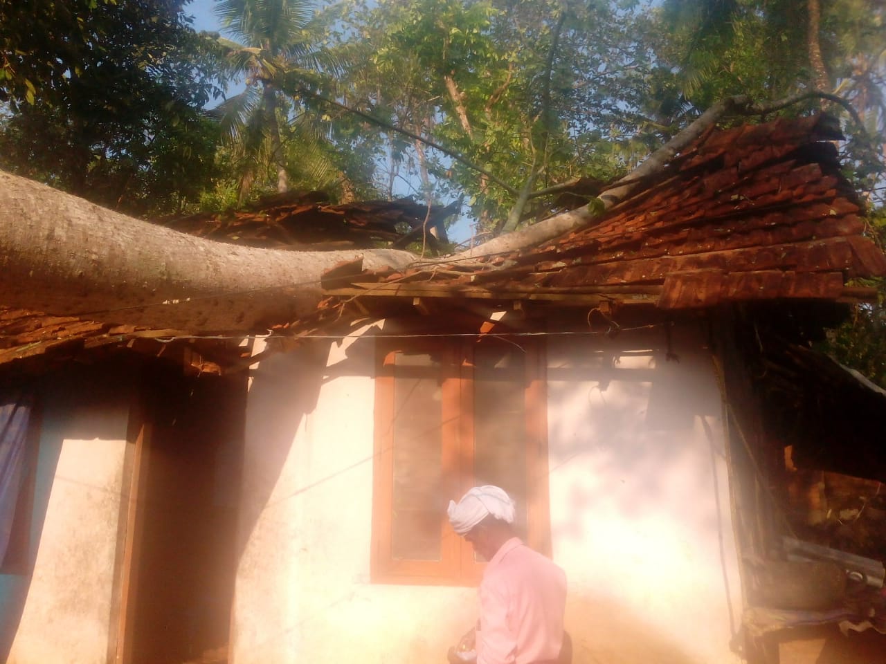 ശക്തമായ കാറ്റിലും മഴയിലും മരങ്ങൾ വീടിനു മുകളിലേക്കു വീണു കിളിമാനൂരിൽ മൂന്ന് പേർക്ക് പരിക്ക്