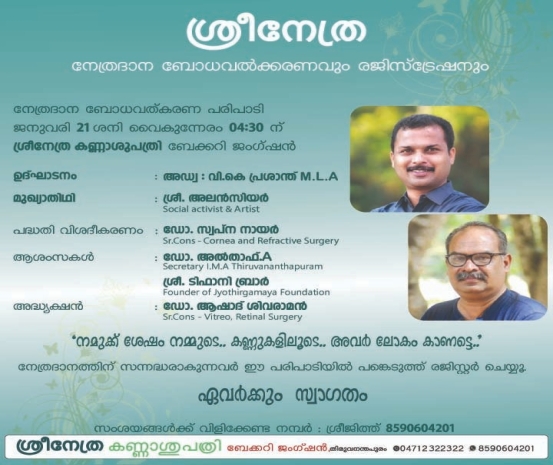 ശ്രീനേത്രയിൽ നേത്രദാന ബോധവൽക്കരണം