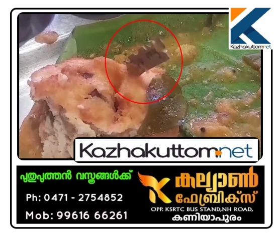വെണ്പാലവട്ടം കുമാര് ടിഫിന് സെന്ററില് നിന്ന് വാങ്ങിയ ഉഴുന്നുവടയിലാണ് ബ്ലേഡ് കണ്ടെത്തിയത്