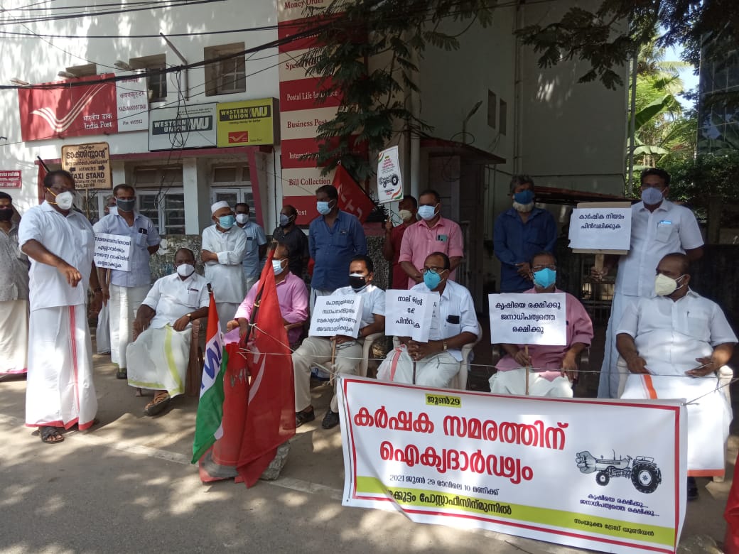 കർക്ഷക സമരത്തിന് ഐക്യ ദാർഡ്യം പ്രഖ്യാപിച്ച് സംയുക്ത ട്രേഡ് യൂണിയൻ കഴക്കൂട്ടം ഏരിയാ കമ്മിറ്റിയുടെ ധർണ്ണ