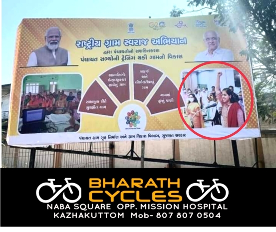 രാഷ്ട്രീയ ഗ്രാമസ്വരാജ് അഭിയാൻ വഴി പഞ്ചായത്തുകളുടെ ശാക്തീകരണം ലക്ഷ്യമിട്ടുള്ള പരസ്യത്തിലാണ് ആര്യയുടെ ചിത്രം ഗുജറാത്ത് സർക്കാർ നല്കിയിരിക്കുന്നത്.