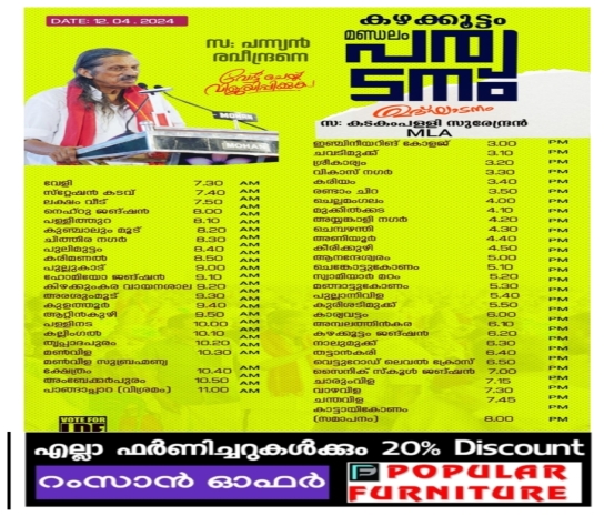 ലോക്സഭാ തെരഞ്ഞെടുപ്പിൽ ഇടതു സ്ഥാനാർത്ഥി പന്ന്യൻ രവീന്ദ്രന്റെ ഇന്നത്തെ കഴക്കൂട്ടം മണ്ഡലം പര്യടനം - പൂർണ്ണ വിവരം ...