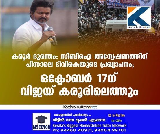 കരൂര് ദുരന്തവുമായി ബന്ധപ്പെട്ട സുപ്രിംകോടതിയുടെ ഇടപെടലിനുശേഷം തമിഴക വെട്രി കഴകം (ടിവികെ) പ്രഖ്യാപനവുമായി രംഗത്ത്.