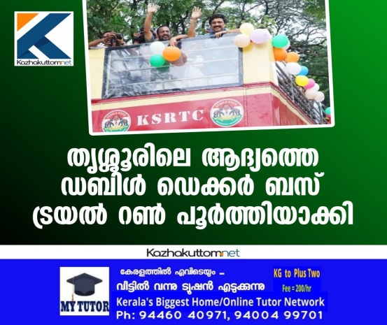 തൃശ്ശൂരിലെ ആദ്യത്തെ ഡബിള് ഡെക്കര് ബസ് ട്രയല് റണ് പൂര്ത്തിയാക്കി