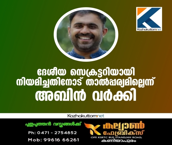 യൂത്ത് കോണ്ഗ്രസ് ദേശീയ സെക്രട്ടറിയാവുന്നതിനോട് താല്പ്പര്യമില്ലെന്ന് അബിന് വര്ക്