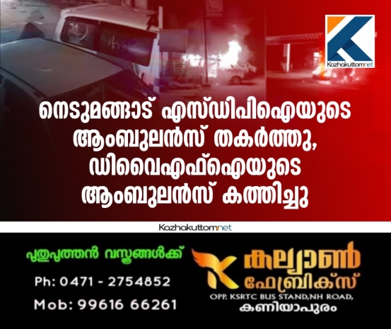 നെടുമങ്ങാട് എസ്ഡിപിഐയുടെ ആംബുലൻസ് തകർത്തു, ഡി...