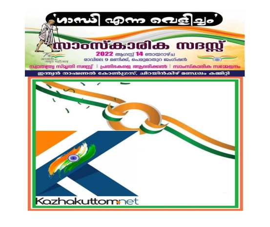 ഞായറാഴ്ച (14/08/2022) രാവിലെ 9 മണിക്ക് ആരംഭിക്കുന്ന പരിപാടിയിൽ ഗാന്ധിയന്മാരെ ആദരിക്കൽ, സ്വാതന്ത്ര്യ സമര സേനാനികളുടെ കുടുംബത്തിന് സ്നേഹാദരം, സ്വാതന്ത്ര്യ സ്മൃതി സദസ്സ്, മഹാത്മാഗാന്ധി അനുസ്മരണം തുടങ്ങിയ പരിപാടികൾ ഉണ്ടാകും.