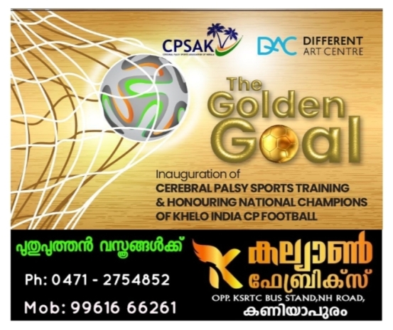 ഇന്ന് (ചൊവ്വ) വൈകുന്നേരം 3 മണിക്ക് സെറിബ്രല്പാഴ്സി കുട്ടികളുടെ ഫുട്ബോള് പ്രദര്ശനവും നടക്കും. ഫുട്ബോള് അടക്കമുള്ള ഗെയിംസ് പരിശീലനം സാധ്യമാക്കുന്നതിനാണ് ദ ഗോള്ഡല് ഗോള് പദ്ധതി നടപ്പിലാക്കുന്നത്
