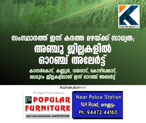കോഴിക്കോട് ,കണ്ണൂർ ,കാസർകോട് ജില്ലകളിൽ ഓറഞ്ച് അലർട്ട് പ്രഖ്യാപിച്ചു