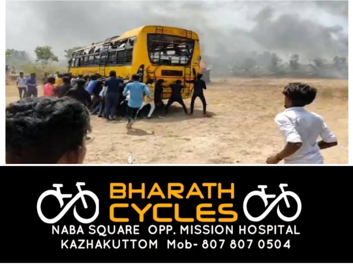 സ്കൂളിൽ സംഘർഷം ബസുകൾ കത്തിച്ചു. പോലീസിനും മർദ്ദനം