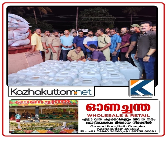1850 ലിറ്റർ സ്പിരിറ്റ് സ്റ്റേറ്റ് എക്സൈസ് എൻഫോഴ്സ്മെന്റ് സ്ക്വാഡ് പിടികൂടി