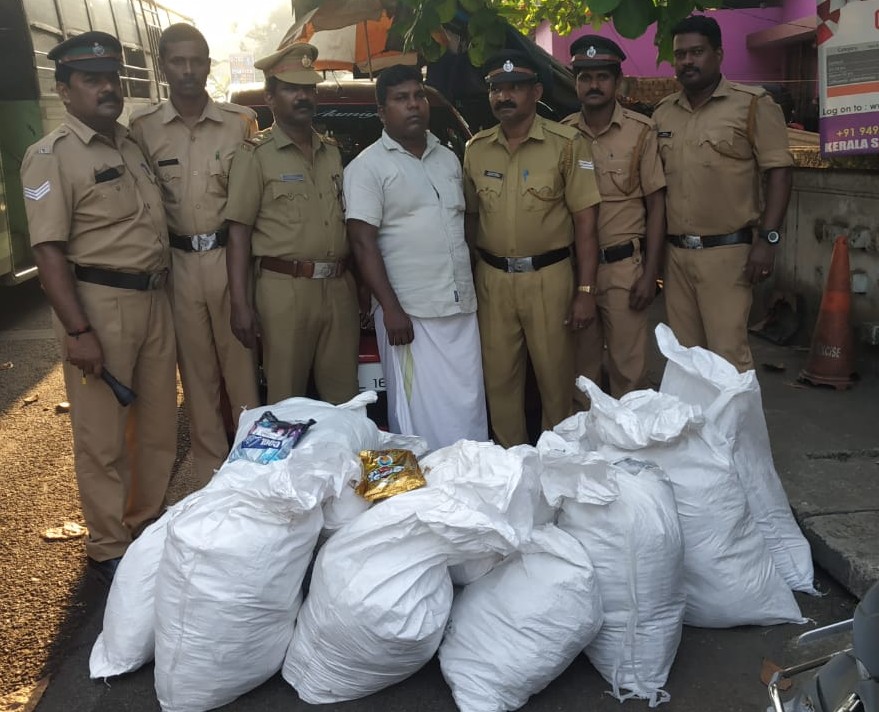 അമരവിള ചെക്ക് പോസ്റ്റിൽ വൻതോതിൽ നിരോധിത പുകയില ഉത്പന്നങ്ങളുമായി പിടിയിൽ.
