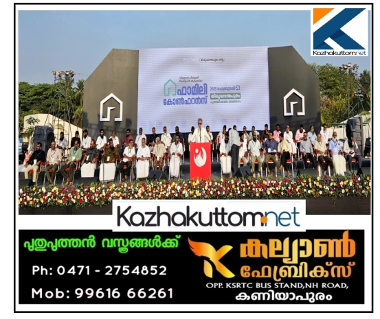 'വിശ്വാസ വിശുദ്ധി, സംതൃപ്ത കുടുംബം' എന്ന പ്രമേയത്തിൽ സംഘടിപ്പിക്കുന്ന ജില്ലാ ഫാമിലി കോൺഫറൻസ് ഇന്ന് വൈകിട്ട് 4:30 മുതൽ തിരുവനന്തപുരം പുത്തരിക്കണ്ടം മൈതാനിയിൽ നടക്കും.