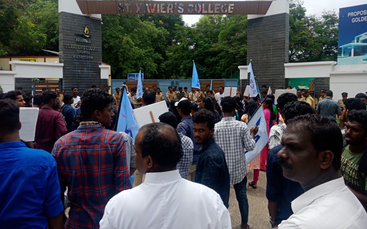 മുക്കുവ സംവരണം: കേരള മത്സ്യ മേഖലാ വിദ്യാർത്ഥി സമിതി സെന്റ് സേവ്യേഴ്സ് കോളേജിലേക്ക് പ്രതിഷേധ മാർച്ച് നടത്തി