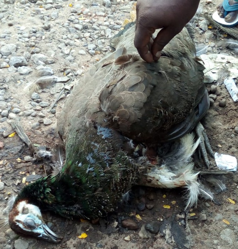 വെട്ടുറോഡ് ജംഗ്ഷനിൽ മിനി ലോറി തട്ടി പെൺ മയിൽ ചത്തു