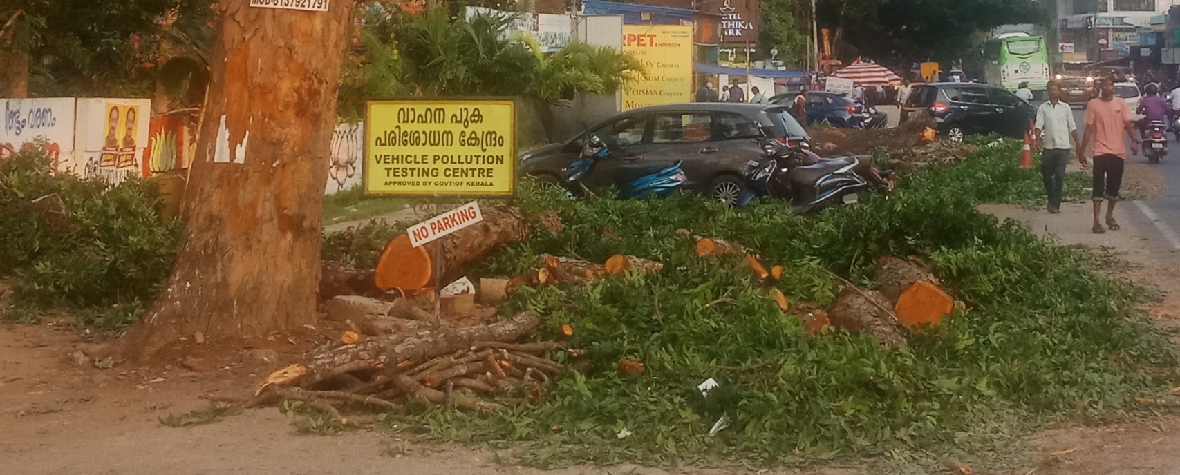 കഴക്കൂട്ടത്ത് മേൽപാല നിർമ്മാണത്തിന്റെ ഭാഗമായി ദേശീയ പാതയിലെ തണൽ മരങ്ങൾ മുറിച്ച് മാറ്റൽ തുടങ്ങി