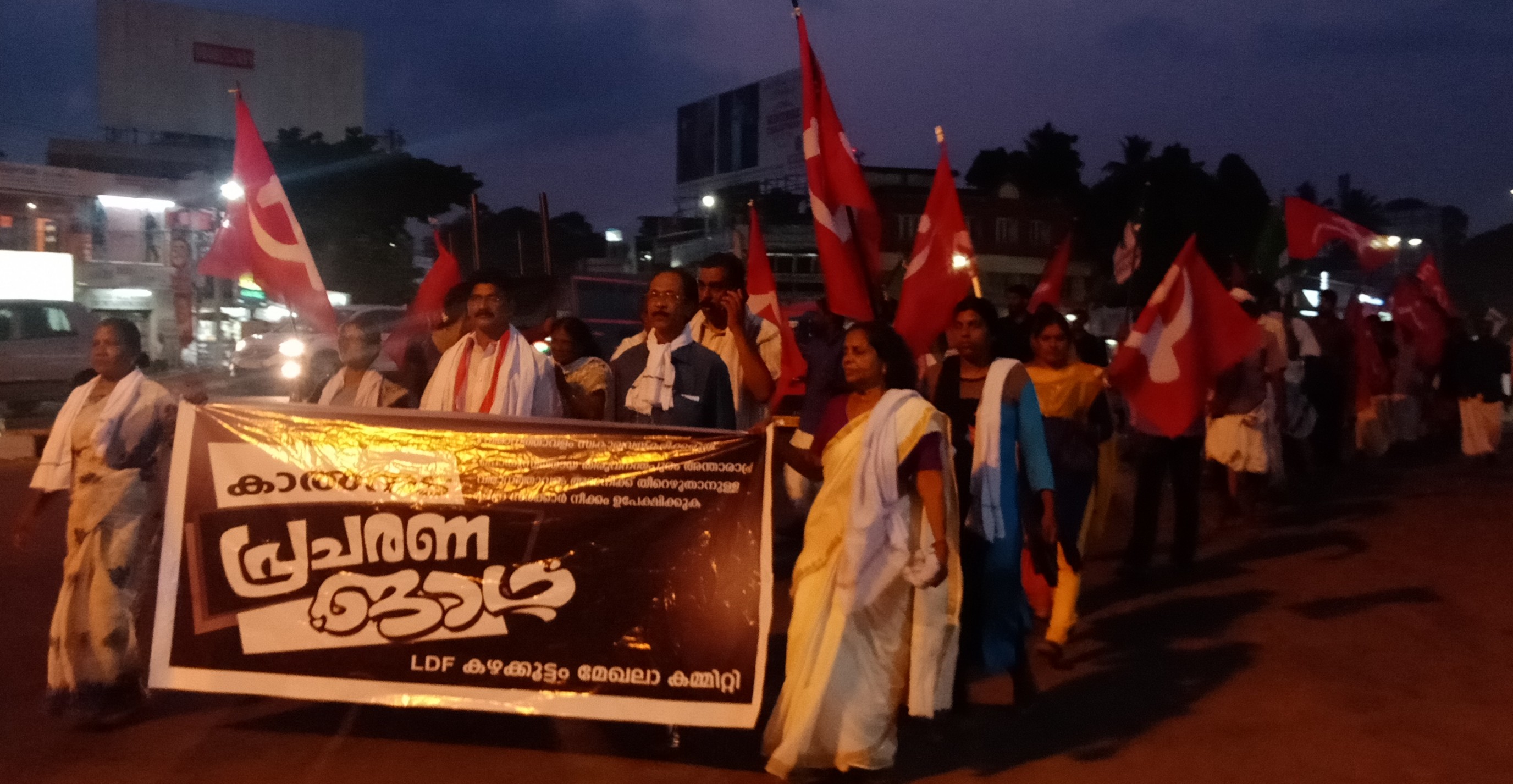 കഴക്കൂട്ടത്ത് അന്താരാഷ്ട്ര വിമാനത്താവള സ്വകാര്യവൽക്കരണത്തിനെതിരെ കാൽനട ജാഥ.