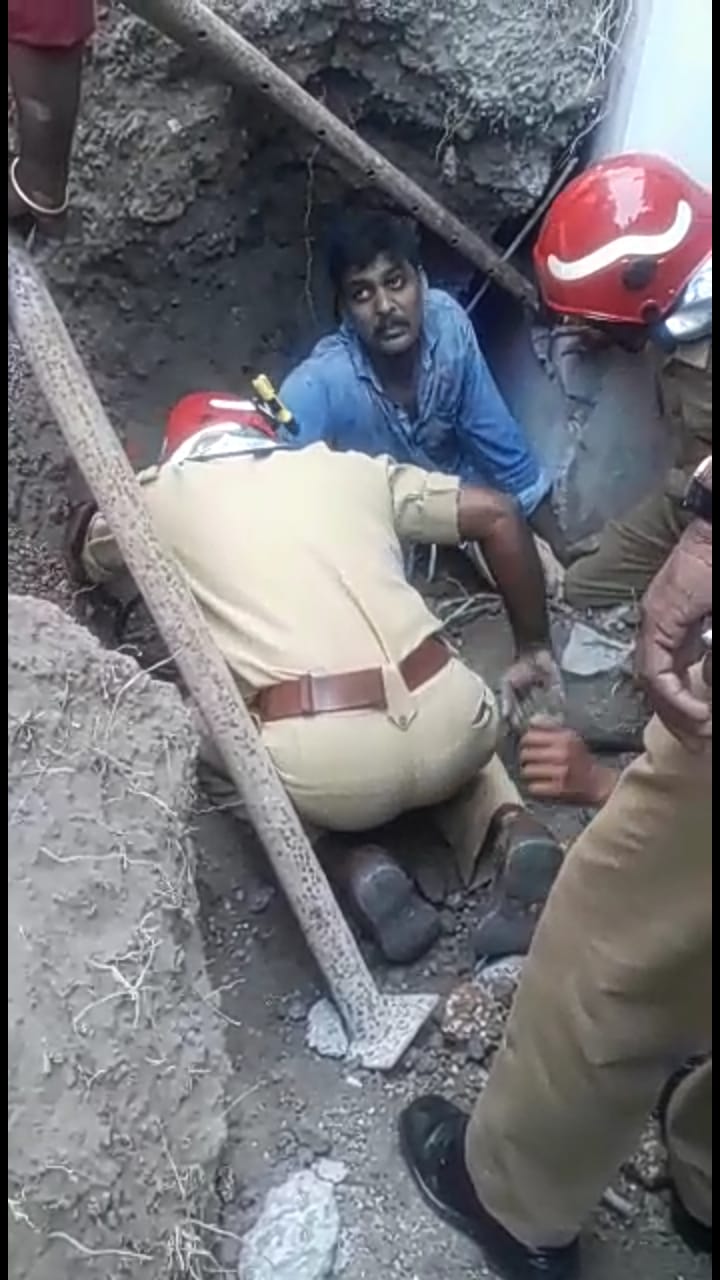 മൺവിള മണൽ ഇടിഞ്ഞു വീണ് ഒരാൾ മണ്ണിനടിയിലായി. ഫയർഫോഴ്സ് എത്തി രക്ഷപെടുത്തി.