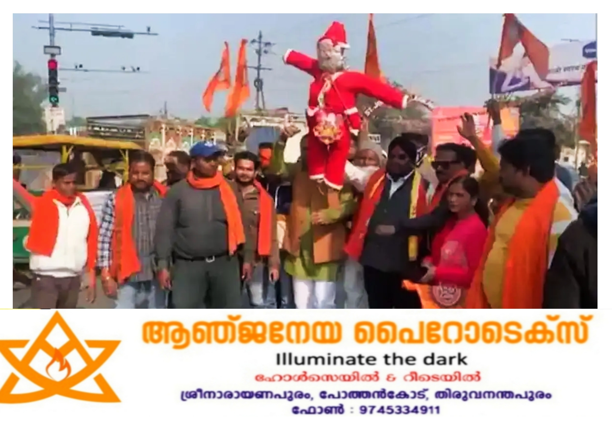 ആഗ്രയിൽ സാന്താക്ലോസിന്റെ കോലം കത്തിച്ച് തീവ്ര ഹൈന്ദവ സംഘടനകൾ.