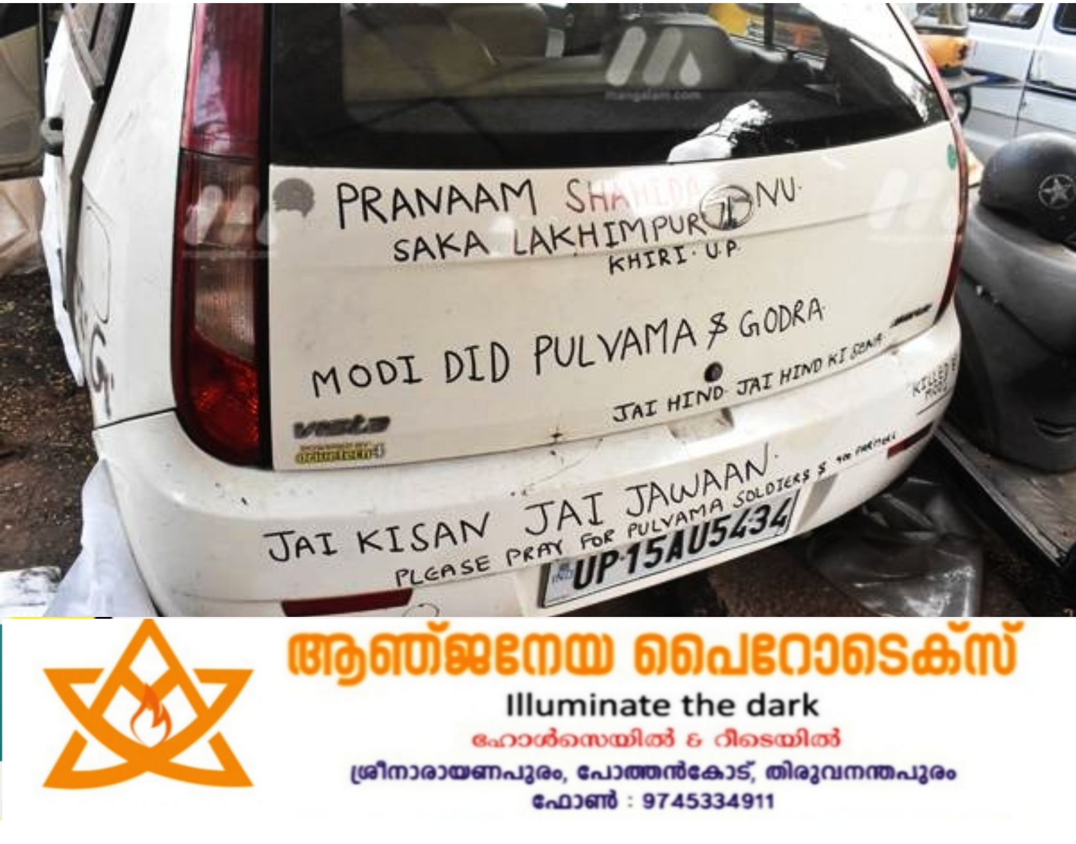 മോഡിക്കെതിരെ മുദ്രാവാക്യങ്ങളെഴുതിയ കാർ തിരുവനന്തപുരത്ത് ഉപേക്ഷിച്ചു;പഞ്ചാബ് സ്വദേശിക്കായി തെരച്ചിൽ.
