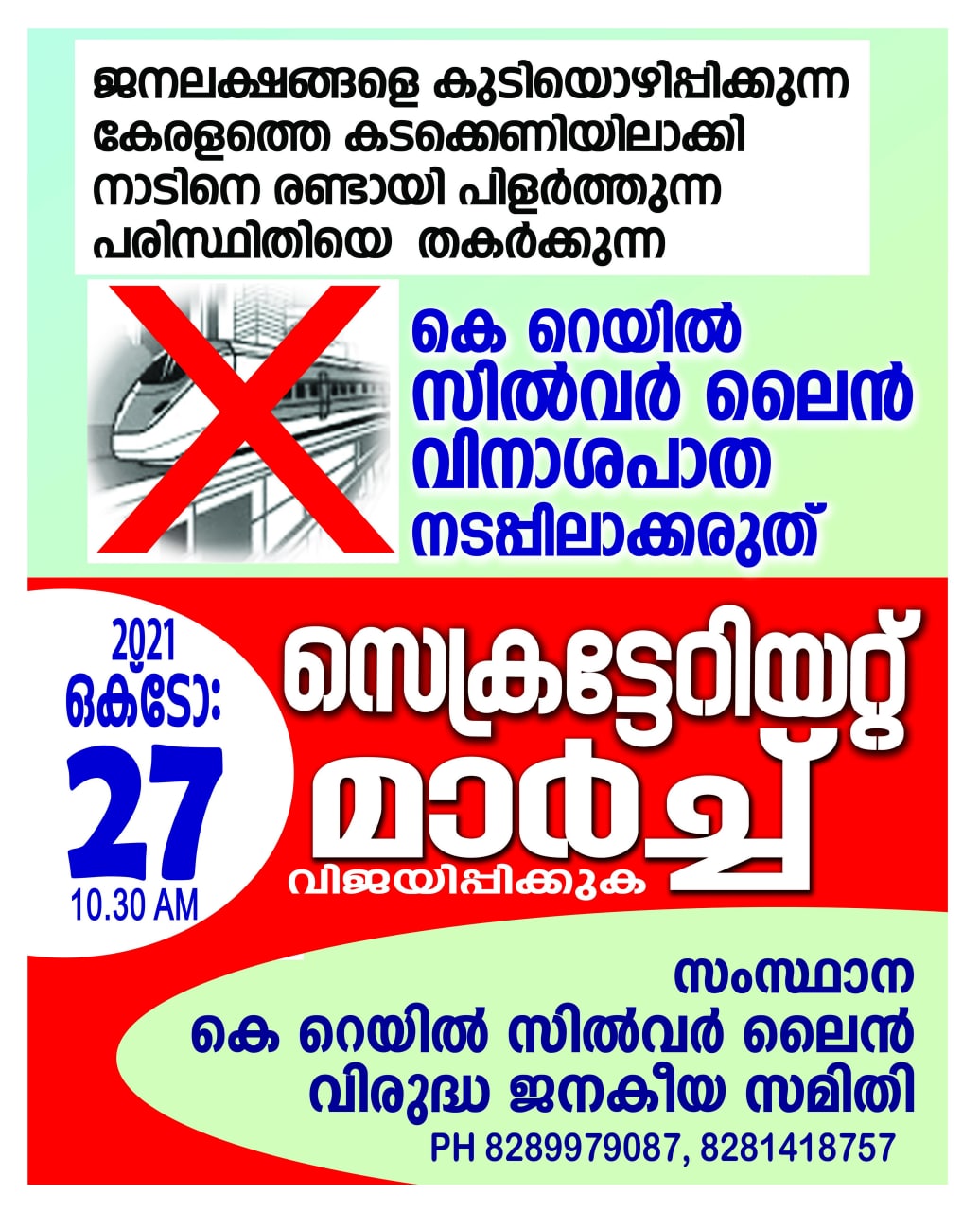 കെ.റെയിൽ സിൽവർ ലൈൻ പദ്ധതി നടപ്പാക്കരുതെന്നാവശ്യപ്പെട്ട് സംഘടിപ്പിക്കുന്ന സെക്രട്ടറിയേറ്റ് മാർച്ച് ഇന
