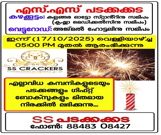 കഴക്കൂട്ടം:കുളങ്ങര ഓട്ടോ സ്റ്റാൻ്റിനു സമീപവും വെട്ടുറോഡ്: അജ്മൽ ഹോട്ടലിനു സമീപവും...... ഫോൺ: 88483 08427