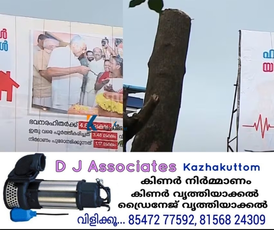രണ്ടു മരങ്ങളുടെ ചില്ലകളാണ് മുറിച്ചുമാറ്റിയത്. ഫ്ളെക്സ് ബോര്ഡിലെ ചിത്രം കാണുന്നുണ്ടെന്ന് ഉറപ്പുവരുത്താനായി, മുറിച്ചശേഷം ഫോണില് ചിത്രമെടുത്തശേഷമാണ് മൂന്നംഗം സംഘം മടങ്ങിയത്.
