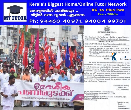 പ്രകടനങ്ങൾക്കും ഘോഷയാത്രകൾക്കും പൊലീസ് അനുമതിക്ക് ഇനി ഫീസ് നൽകണം. പ്രകടനത്തിന് ഇതുവരെ ഫീസ് അടയ്ക്കേണ്ട ആവശ്യമുണ്ടായിരുന്നില്ല. ഒക്ടോബർ ഒന്നുമുതൽ ഉത്തരവ് നടപ്പാകും. ജില്ലകളിൽ പ്രകടനത്തിനു അനുമതിയ്ക്ക് ഫീസായി 10,000 രൂപ നൽകണം. പൊലീസ് സ്റ്റേഷന്റെ പരിധിയിലാണെങ്കിൽ അനുമതിക്ക് 2,000 രൂപയും സബ്ഡിവിഷൻ പരിധിയിൽ 4,000ഉം നൽകണം. നിലവിൽ ഇവയെല്ലാം സൗജന്യമാണ്. സർക്കാർ അംഗീകൃത വിദ്യാഭ്യാസ സ്ഥാപനങ്ങൾ, പൊതു ലൈബ്രറികൾ, ശാസ്ത്ര സ്ഥാപനങ്ങൾ എന്നിവയ്ക്ക് ഫീസില്ല.