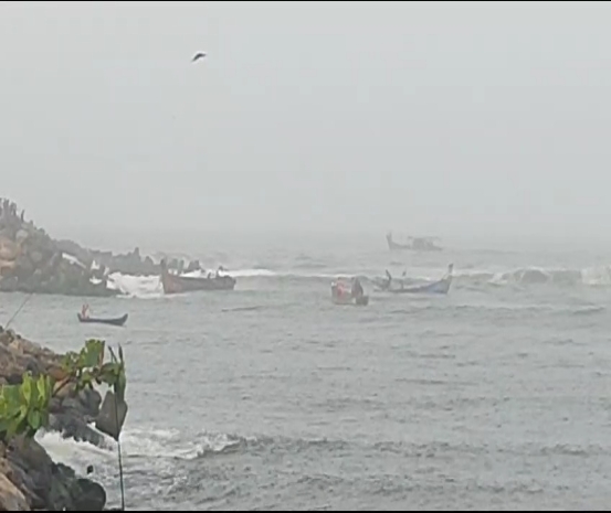 മുതലപ്പൊഴിയിൽ മത്സ്യബന്ധന വള്ളം പുലിമുട്ടിലേക്ക് ഇടിച്ചു കയറി അപകടം.