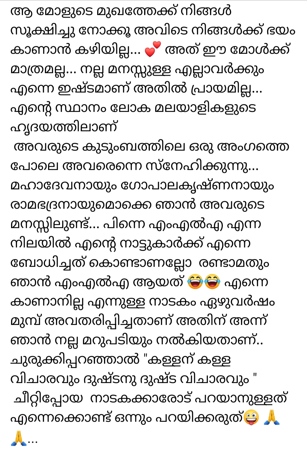 ആ മോളുടെ മുഖത്തേക്ക് നിങ്ങൾ സൂക്ഷിച്ചു നോക്കൂ അവിടെ നിങ്ങൾക്ക് ഭയം കാണാൻ കഴിയില്ല... 💕 അത് ഈ മോൾക്ക് മാത്രമല്ല... നല്ല മനസ്സുള്ള എല്ലാവർക്കും എന്നെ ഇഷ്ടമാണ് അതിൽ പ്രായമില്ല... എന്റെ സ്ഥാനം ലോക മലയാളികളുടെ ഹൃദയത്തിലാണ്