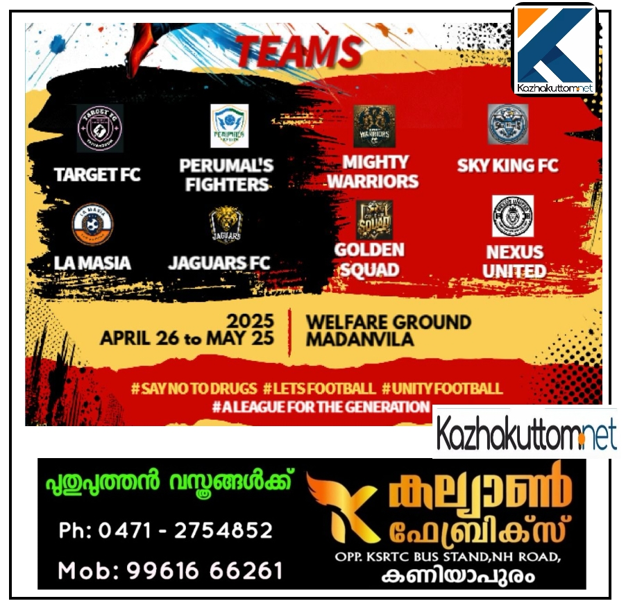 ഏഴ് മണിക്ക് നടക്കുന്ന ഉദ്ഘാടന മത്സരത്തിൽ ടാർഗറ്റ് എഫ്.സി പെരുമാൾ ഫൈറ്റേഴ്സിനെ നേരിടും. എല്ലാ മത്സരങ്ങളും ഫ്ലഡ്ലിറ്റിലാണ് നടക്കുക. 08:00 മണിക്ക് നടക്കുന്ന രണ്ടാം മത്സരത്തിൽ ഗോൾഡൻ സ്ക്വാഡ് നെക്സസ് യുണൈറ്റഡിനെ നേരിടും. ലാ മാസിയ, മൈറ്റി വാരിയേഴ്സ്, സ്കൈ കിംഗ്സ് എഫ്.സി, ജാഗ്വേഴ്സ് എഫ്.സി എന്നിവയാണ് മറ്റ് ടീമുകൾ. മേയ് 25 നാണ് ഒരു മാസം നീണ്ടു നിൽക്കുന്ന ഫുട്ബോൾ മാമാങ്കത്തിന്റെ കലാശപ്പോരാട്ടം നടക്കുക.